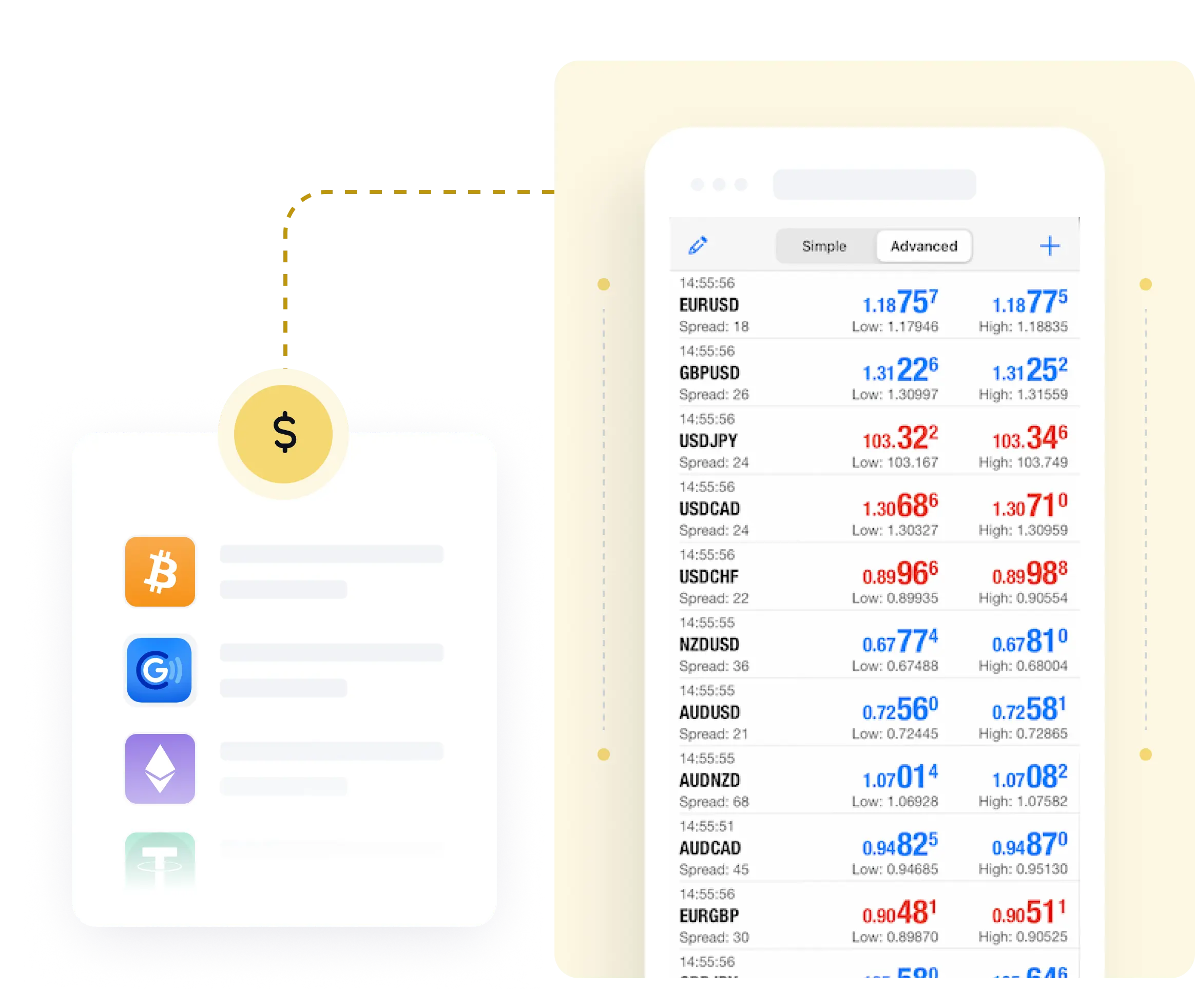 Selecione e opere mais de 2850 instrumentos em sua conta Real ou Demo.