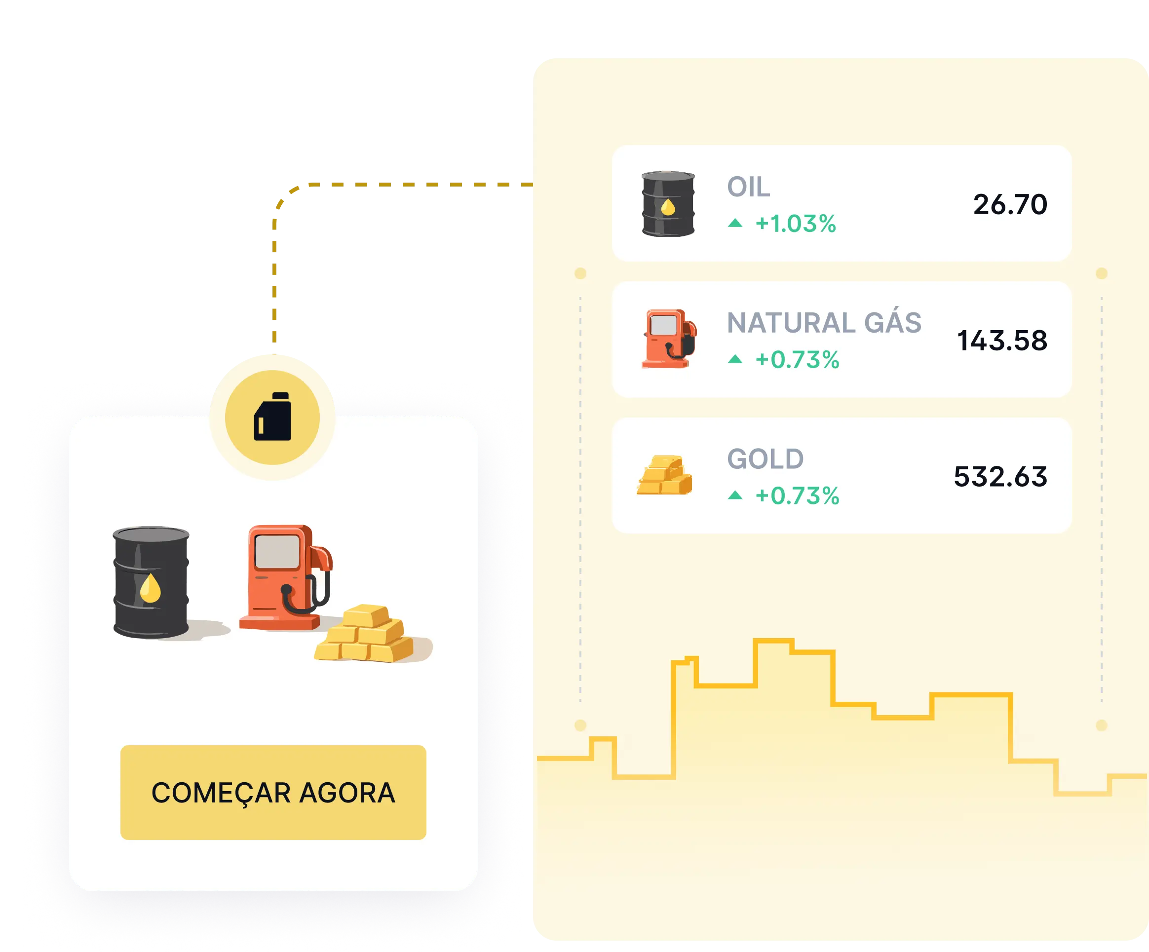 Negocie petróleo, gás e outras commodities que movimentam a economia global.